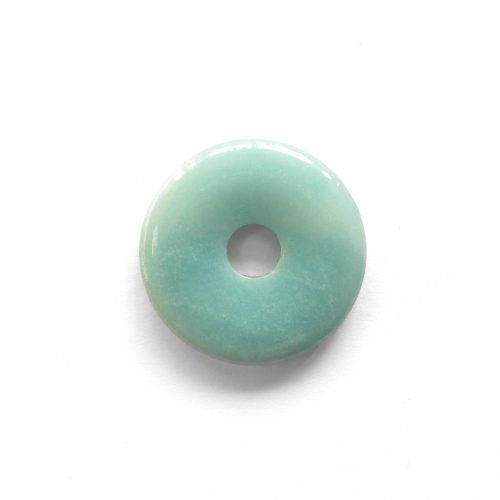 Bei diesem Artikel handelt es sich um einen Donut aus Amazonit mit 30 mm Durchmesser. Da es sich bei den verarbeiteten Steinen um ein Naturprodukt handelt können Farben, Form und Musterung vom Beispielbild abweichen.