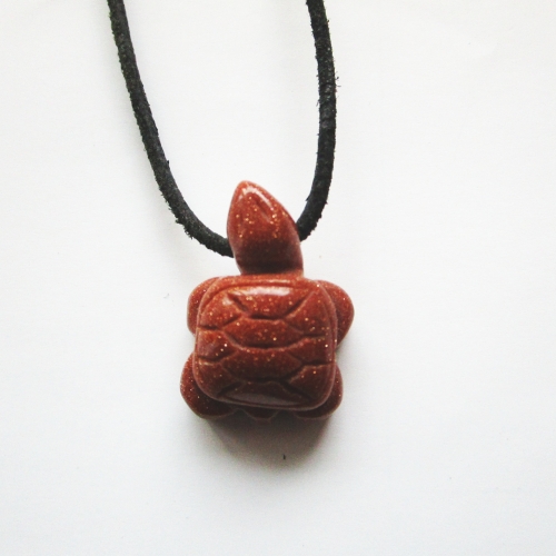 Bei diesem Artikel handelt es sich um eine Steingravur aus Goldfluss in Schildkrötenform. Die Größe beträgt 25 mm mit einer 2.5 mm Bohrung. Im Lieferumfang weiters enthalten ist ein 42 cm langes schwarzes Ziegenlederband mit Verschluss in der Stärke 15 mm. Da es sich bei den verarbeiteten Steinen um ein Naturprodukt handelt können Farben, Form und Musterung vom Beispielbild abweichen. Verbraucherhinweis: Bitte bedenken Sie, dass alle beschriebenen Wirkungen wissenschaftlich nicht belegbar sind und daher keinen Besuch beim Arzt ersetzen.