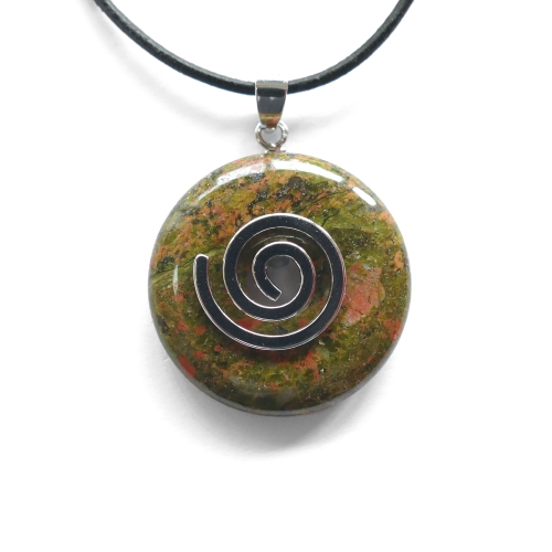 Bei diesem Artikel handelt es sich um einen Donut mit 30 mm Durchmesser. Im Lieferumfang weiters enthalten sind ein versilberter Donuthalter in Spiralform für 30 mm Donuts und ein schwarzes Lederband. Das Lederband ist aus Ziegenleder, 42 cm lang und der Verschluss ist in der Stärke 15 mm. Da es sich bei den verarbeiteten Steinen um ein Naturprodukt handelt können Farben, Form und Musterung vom Beispielbild abweichen. Verbraucherhinweis: Bitte bedenken Sie, dass alle beschriebenen Wirkungen wissenschaftlich nicht belegbar sind und daher keinen Besuch beim Arzt ersetzen.