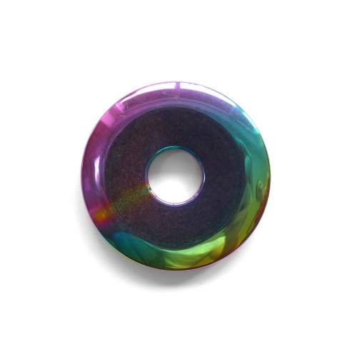 Bei Rainbow Hämatit handelt es sich grundlegend um einen an der Oberfläche behandelten Hämatit. Um die charakteristischen Regenbogenfarben an dem Stein zu erzeugen wird dieser für gewöhnlich mit Titanoxid bedampft. Dabei ensteht eine dünne Schicht an der Oberfläche, die aufgrund unterschiedlicher Lichtbrechung und Reflexion die den Rainbow Hämatit kennzeichnenden Regenbogenfarben hervorbringt.
