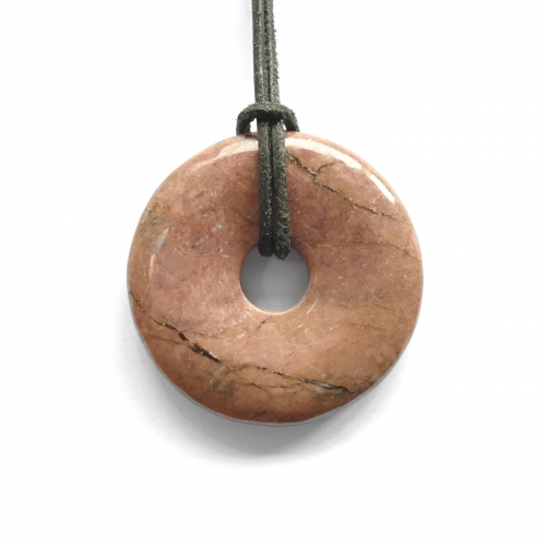 Bei diesem Artikel handelt es sich um einen Donut mit 40 mm Durchmesser. Im Lieferumfang weiters enthalten ist ein 50 cm langes schwarzes Ziegenlederband mit Verschluss in der Stärke 15 mm. Da es sich bei den verarbeiteten Steinen um ein Naturprodukt handelt können Farben, Form und Musterung vom Beispielbild abweichen. Verbraucherhinweis: Bitte bedenken Sie, dass alle beschriebenen Wirkungen wissenschaftlich nicht belegbar sind und daher keinen Besuch beim Arzt ersetzen.