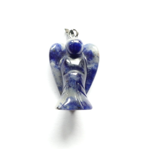Bei diesem Artikel handelt es sich um einen Steinengelanhänger aus Sodalith mit Metallöse. Die Größe beträgt 20 mm. Der Engel kann sowohl an einer Kette um den Hals getragen werden, als auch als Weihnachtsschmuck verwendet werden. Da es sich bei den verarbeiteten Steinen um ein Naturprodukt handelt können Farben, Form und Musterung vom Beispielbild abweichen.