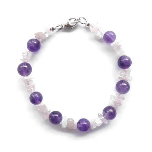 Amethyst besitzt eine reinigende, entgiftende und desinfizierende Wirkung. In seiner Geschichte wurde er gerne gegen Hautausschläge, einfache Hautkrankheiten und gegen Trunkenheit eingesetzt. Auf geistiger Ebene stärkt Amethyst die Konzentration und Denkfähigkeit und hilft bei Denkblockaden, Hemmungen, Aufstauungen, Grübelzwängen und schlechten Träumen.